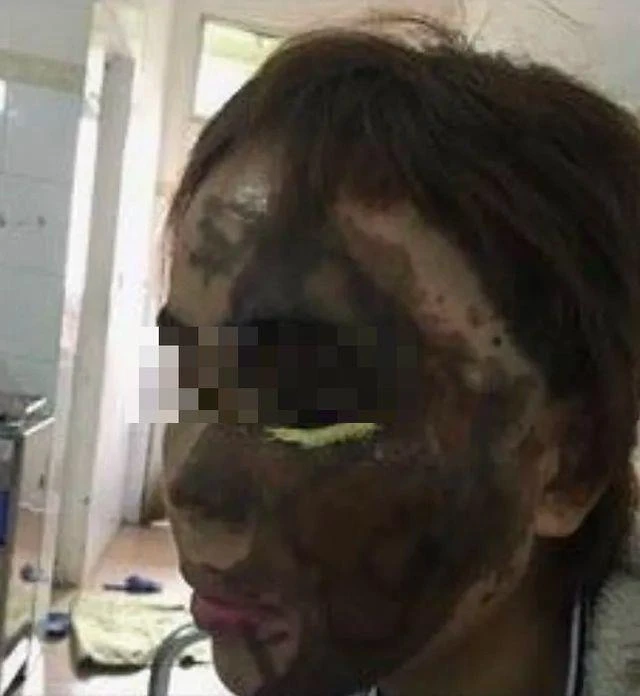 Khuôn mặt chị V. bị tổn thương nghiêm trọng vì bị Hải tạt axit. Ảnh: FB bị hại