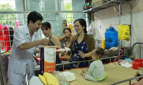 Nhân đây, BV cũng trao cho mỗi bé một suất quà trị giá 400.000 đồng gồm tiền mặt và bánh kẹo mong muốn giúp đỡ phần nào cho bé và gia đình.