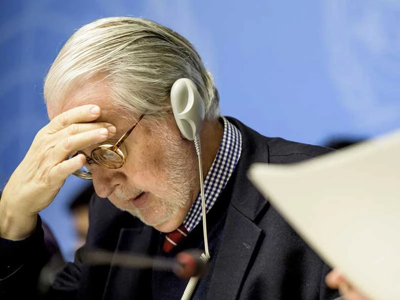 Ông Paulo Sergio Pinheiro, Chủ tịch Ủy ban Điều tra về Syria của LHQ, ngày 6-3 công bố báo cáo đề cập khả năng Nga có vi phạm tội ác chiến tranh. Ảnh: EPA