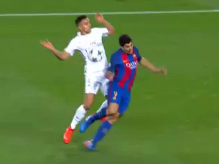 PSG cũng bị một quả phạt đền oan ở lượt về vòng 16 đội Champions League, "kịch sĩ" lại là Suarez.