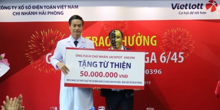 Anh P.D.H cho biết sau khi đi lễ đền, anh đã tự chọn 06 dãy số để cầu may, trong đó có dãy số 03 – 04 – 06 – 38 – 39 – 43 trúng thưởng Jackpot. Cũng trong lễ trao giải, anh P.D.H quyết định trích tặng 50 triệu đồng đến Quỹ Trái tim cho em – Bệnh viện Trẻ em Hải Phòng.