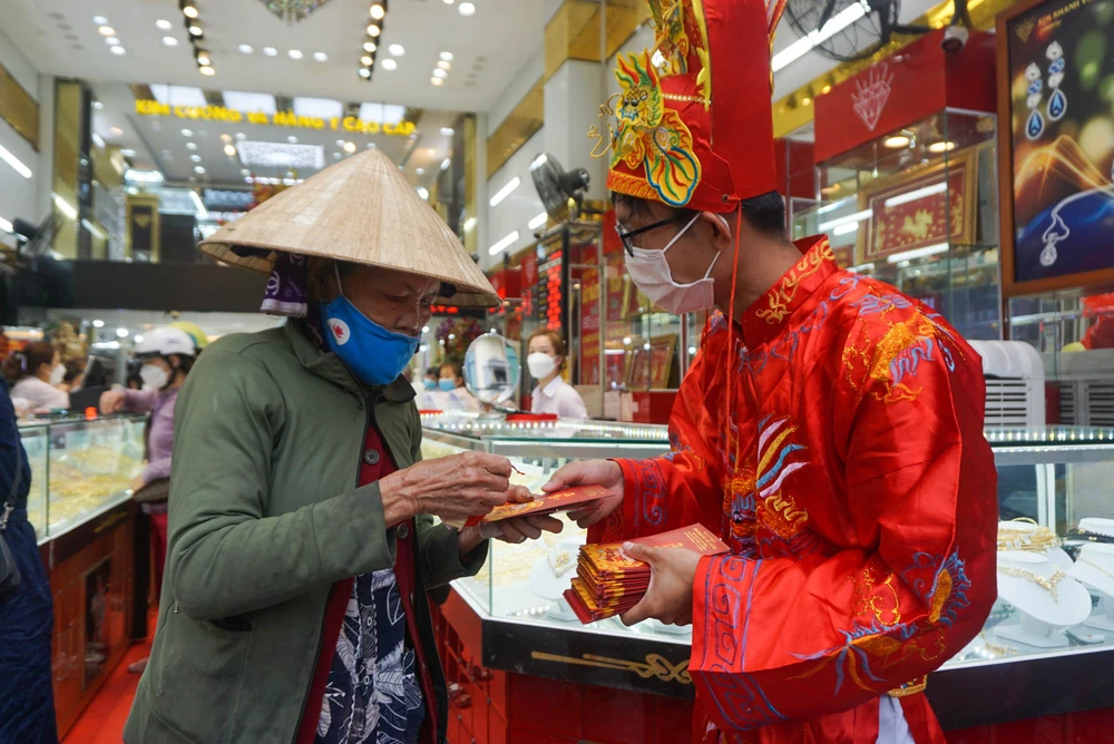 Dậy sớm để tới tiệm mua vàng, chị Kim Oanh (ngụ phường Hòa Khánh Nam, quận Liên Chiểu) cho biết, mọi năm đều mua vàng để giữ lộc, giúp cho việc kinh doanh phát đạt.