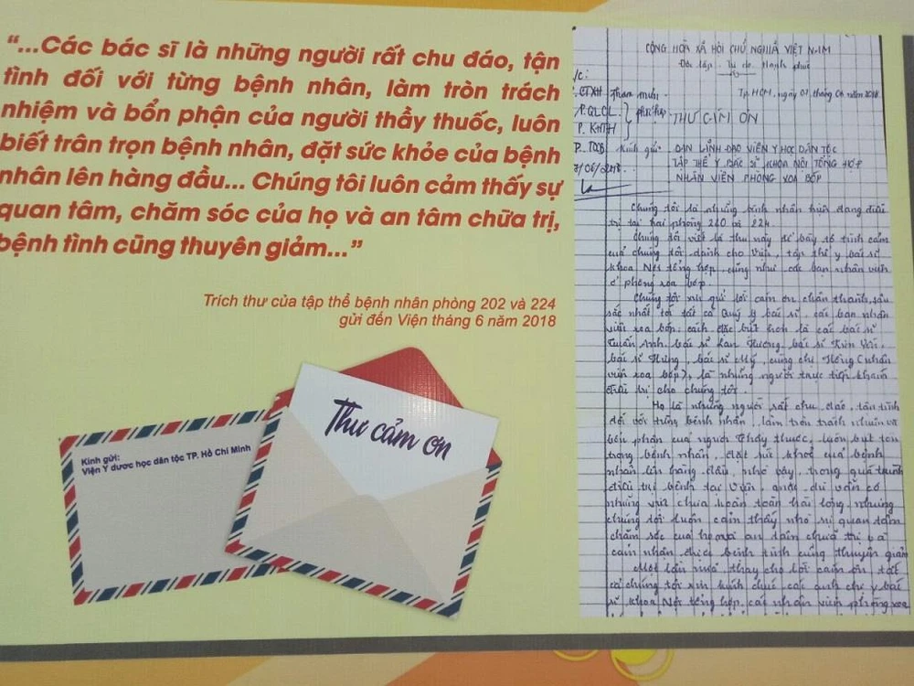 Những bức thư cảm ơn của bệnh nhân đã điều trị tại viện trong nhiều năm nay. Ảnh: TRÚC PHƯƠNG