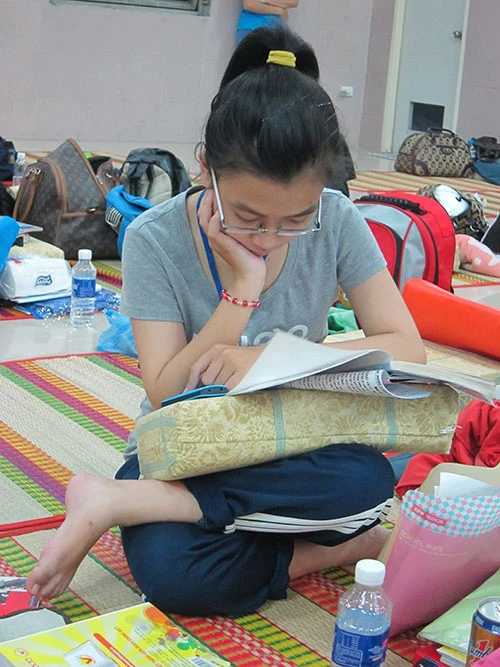 Tại cụm thi trường Đại học Sư phạm TP.HCM, điểm thi số 20, trường THCS Phan Bội Châu, quận 5, sau khi hoàn thành môn thi buổi sáng, các sĩ tử kéo nhau vào miếu Nhị Phủ, tìm một góc mát mẻ, vừa ý để nghĩ ngơi và ôn bài.