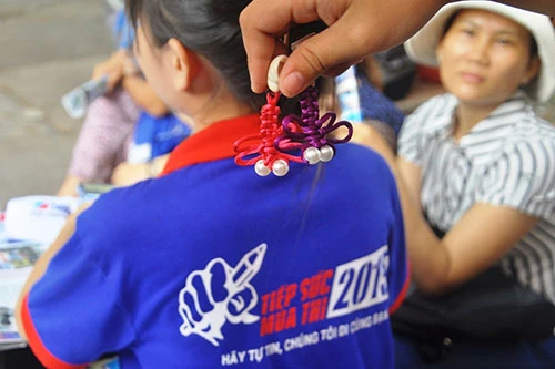Tại điểm thi trường THPT Nguyễn Chí Thanh, quận Tân Bình, TP.HCM, những sinh viên tình nguyện đã tết 1.000 con chuồn chuồn dành tặng cho các thí sinh tham dự để chắp cánh ước mơ cho các em.