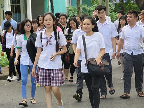 Các thí sinh vừa thi xong buổi thi sáng 3-7 tại TP.HCM. Ảnh: P.ANH