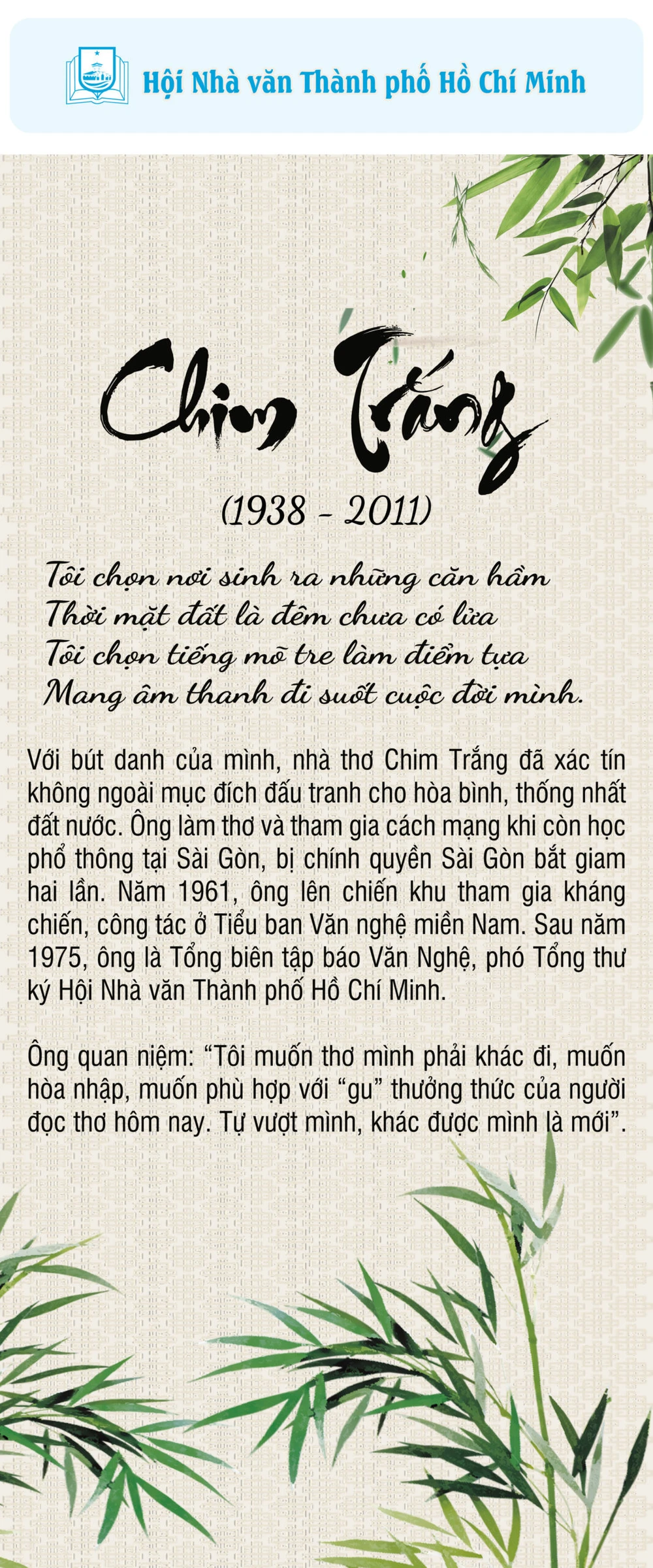 Ngày thơ Việt Nam năm 2023 sẽ được tổ chức trong 2 ngày 4 và 5-2 (tức ngày 14 và 15 tháng Giêng âm lịch), tại khuôn viên Liên hiệp Các hội Văn học Nghệ thuật TP. Hồ Chí Minh (số 81 Trần Quốc Thảo, quận 3) với chủ đề Khát vọng phương Nam.