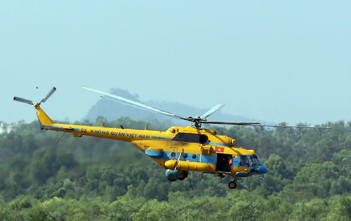 Trực thăng tìm kiếm trên đất liền. Ảnh: VNE