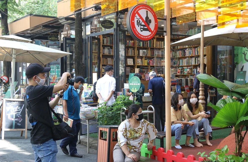 "Đường sách và Bưu điện thành phố là nơi có nhiều kỷ niệm của chúng tôi hồi sinh viên. Hết dịch tôi thấy mọi người đi dạo, vào chụp hình, ngồi ăn vỉa hè cũng đông nên chúng tôi luôn đeo khẩu trang và rửa tay thường xuyên. Vào đường sách, mọi người phải khai báo y tế, có máy rửa tay nên tôi cũng yên tâm" - Tín chia sẻ.