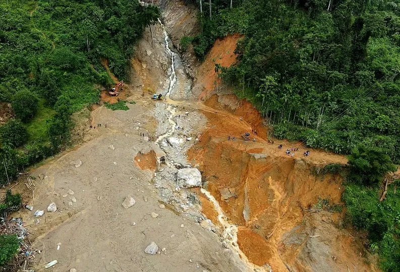 Thôn 1, xã Trà Leng bị lở núi vùi lấp nhìn từ trên cao
