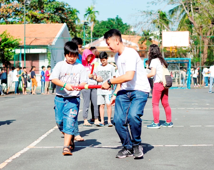 Các nhân viên Amway đang vui đùa cùng các em ở làng SOS