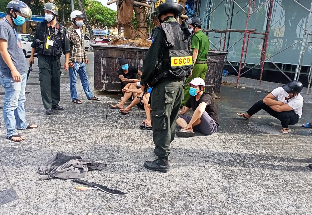 Lực lượng cảnh sát 911, Công an TP Đà Nẵng ngăn chặn nhóm thanh niên mang hung khí định đi trả thù đối thủ trên đường Nguyễn Văn Linh (quận Hải Châu).