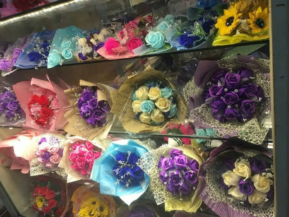 Một số cửa hàng quà tặng như Hana Shop có các sản phẩm độc lạ như hoa hồng handmade làm bằng giấy Ý với nhiều màu sắc, mẫu mã thiết kế đẹp lạ. Giá 10.000-20.000 đồng /bông; 250.000-450.000 đồng/bó.
