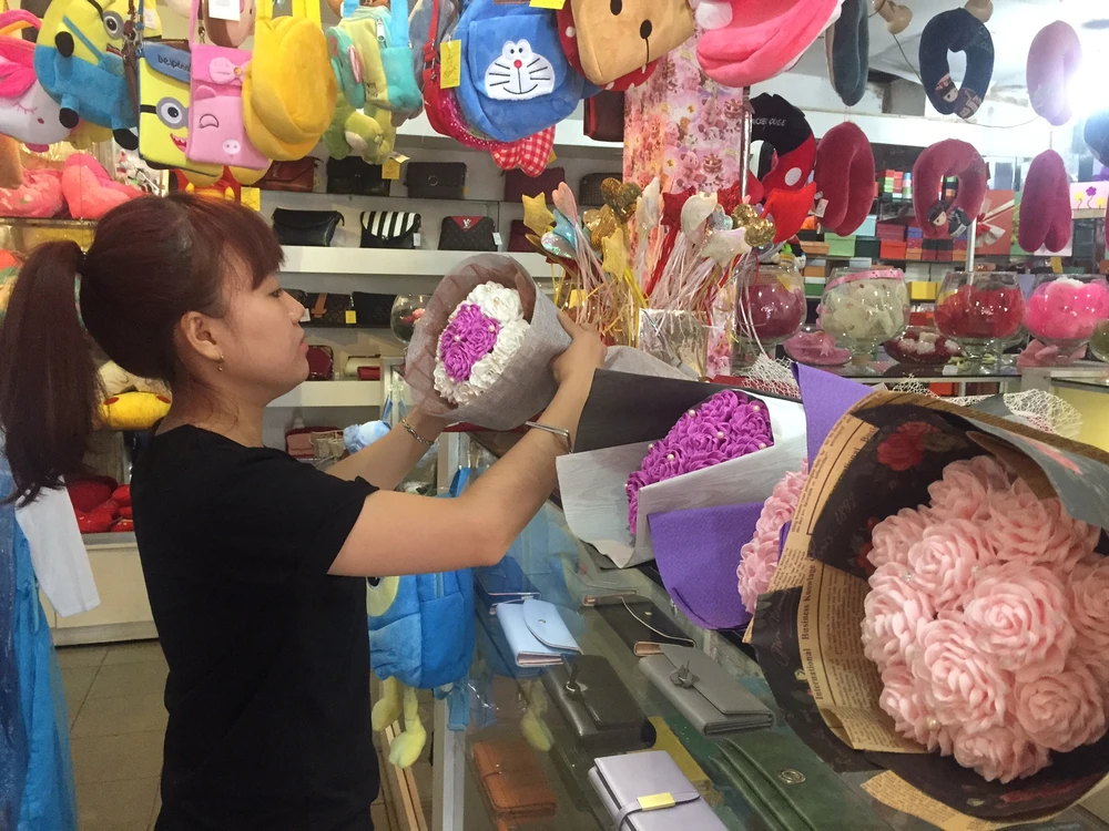 Giới trẻ vẫn thích tặng thú nhồi bông, người lớn tuổi hơn thì chọn bóp ví, nước hoa, các sản phẩm khác. Năm nay giá các mặt hàng quà tặng cho lễ tình nhân không tăng.