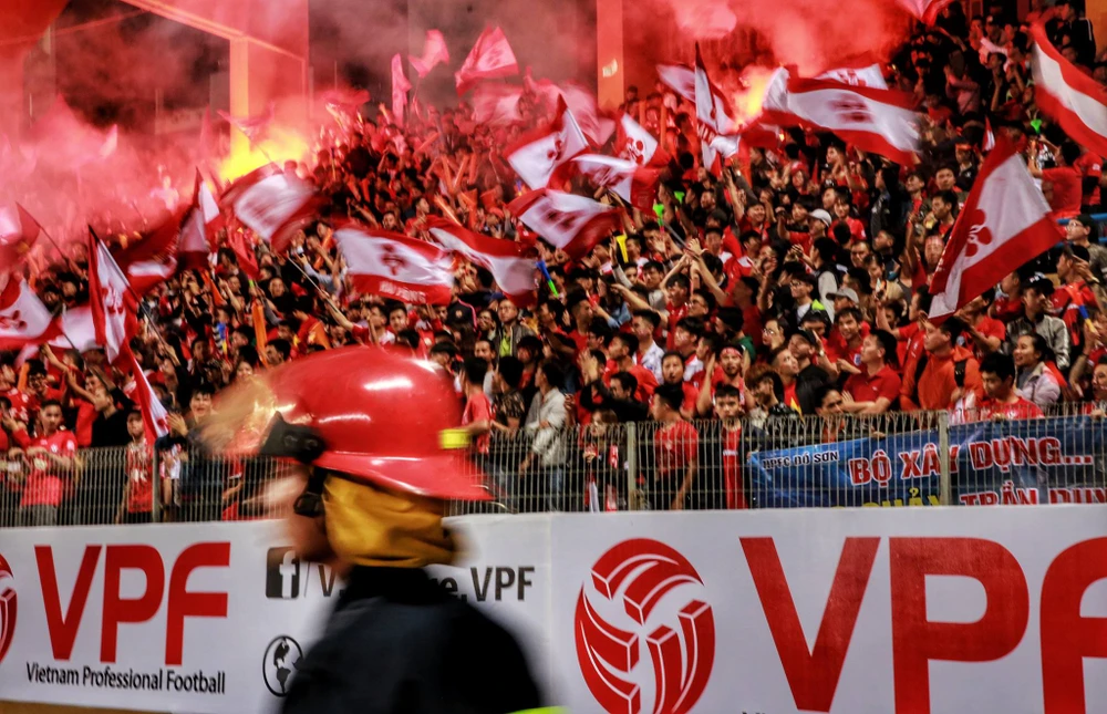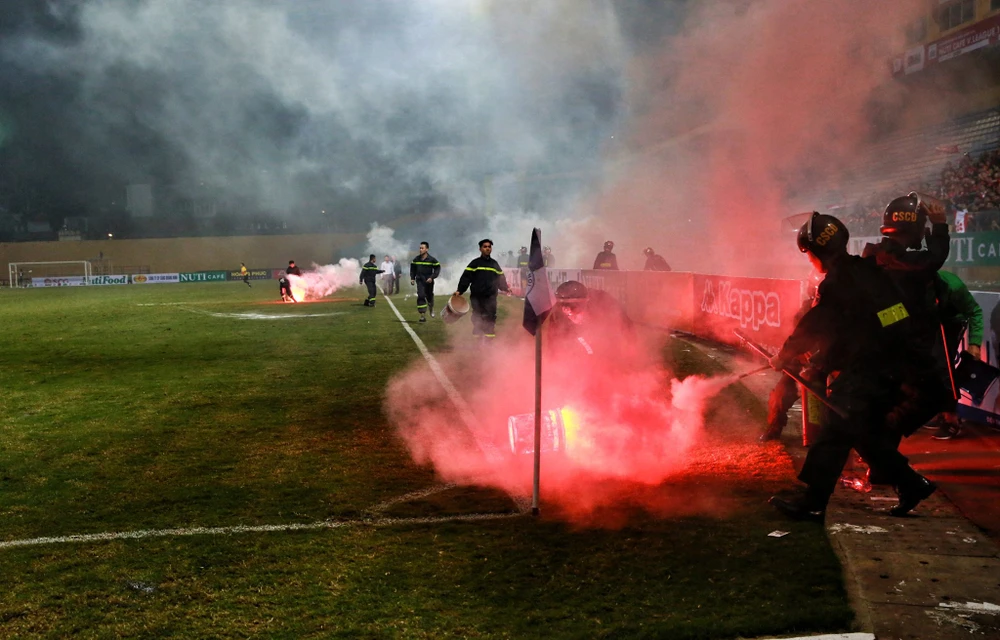 Diễn biến những phút cuối của trận đấu Hà Nội-Hải Phòng trên sân Hàng Đẫy khi đội khách đang bị dẫn 0-1 là rất nghiêm trọng, các cổ động viên đốt pháo sáng nhiều chỗ trên khán đài và ném hai đợt xuống mặt sân thi đấu đầy thách thức.