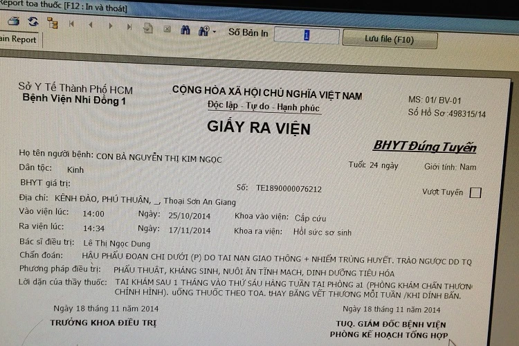 TS-BS Nguyễn Thanh Hùng, Giám đốc BV Nhi đồng 1, cho biết bé xuất viện trong tình trạng sức khoẻ tốt. Một thời gian nữa bé sẽ được trở lại nhập viện phẫu thuật tạo hình chân.