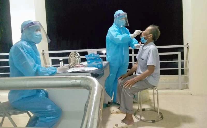 Cán bộ Trung tâm Kiểm soát bệnh tật tỉnh Nghệ An lấy mẫu xét nghiệm cho người dân.