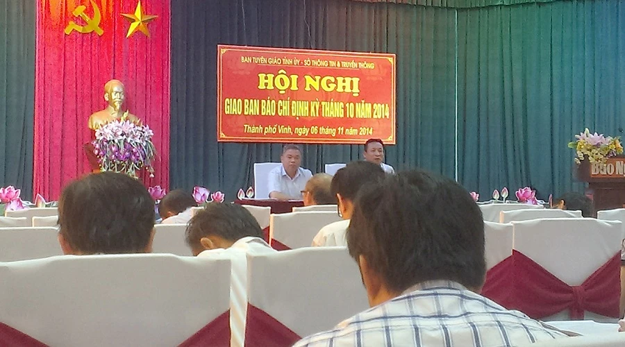 Hội nghị giao ban báo chí định kỳ của Ban tuyên giáo Tỉnh ủy Nghệ An và Sở TT-TT tỉnh Nghệ An chiều 6-11-2014