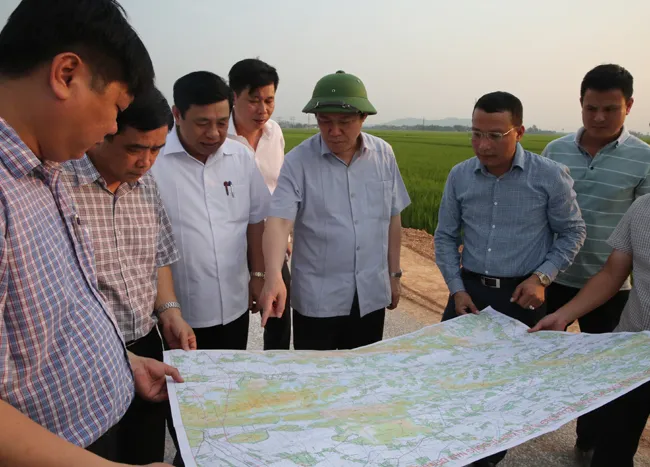 Phó Thủ tướng Vương Đình Huệ thị sát dự án giao thông nối khu vực huyện Đô Lương tới Khu kinh tế Đông Nam tỉnh Nghệ An.