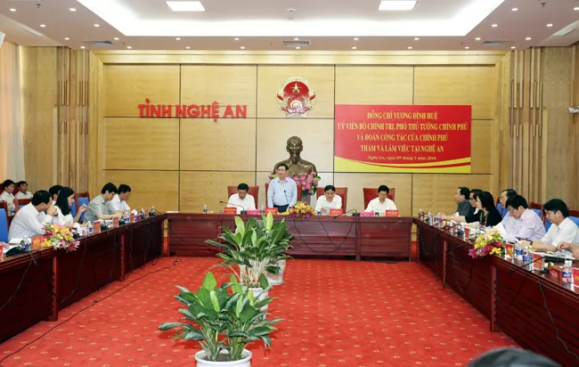 Kết luận buổi làm việc, Phó Thủ tướng Vương Đình Huệ đánh giá cao nỗ lực của tỉnh Nghệ An đã đạt được trong thời gian qua, góp phần vào thành quả chung của cả nước về thúc đẩy phát triển kinh tế, ổn định kinh tế vĩ mô, kiểm soát lạm phát và đảm bảo an sinh xã hội.