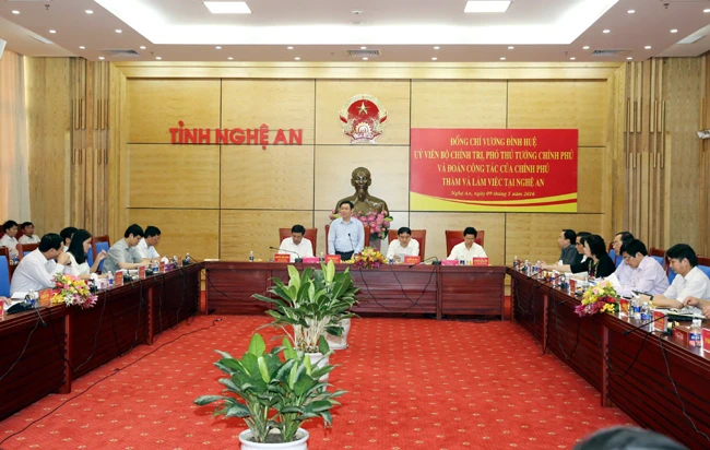 Phó Thủ tướng Vương Đình Huệ nhấn mạnh: “Tỉnh Nghệ An phải thay dổi tư duy để phát triển bằng các chính sách, cơ chế phù hợp với yêu cầu của nền kinh tế thị trường chứ xin vốn từ ngân sách sẽ không làm hiệu quả. Phải lấy ngắn nuôi dài, tính từng bước một”.
