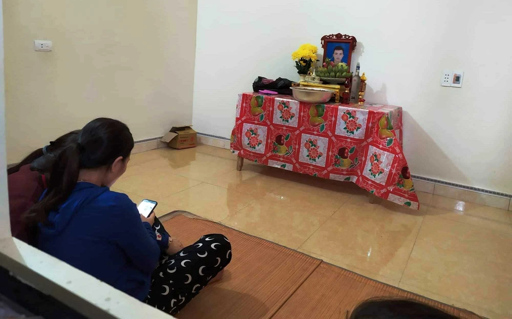 Người thân lập bàn thờ vọng và cầm điện thoại chờ tin tức anh Nguyễn Đình Tứ (26 tuổi, quê xã Đô Thành) - đang mất liên lạc khi sang Anh.