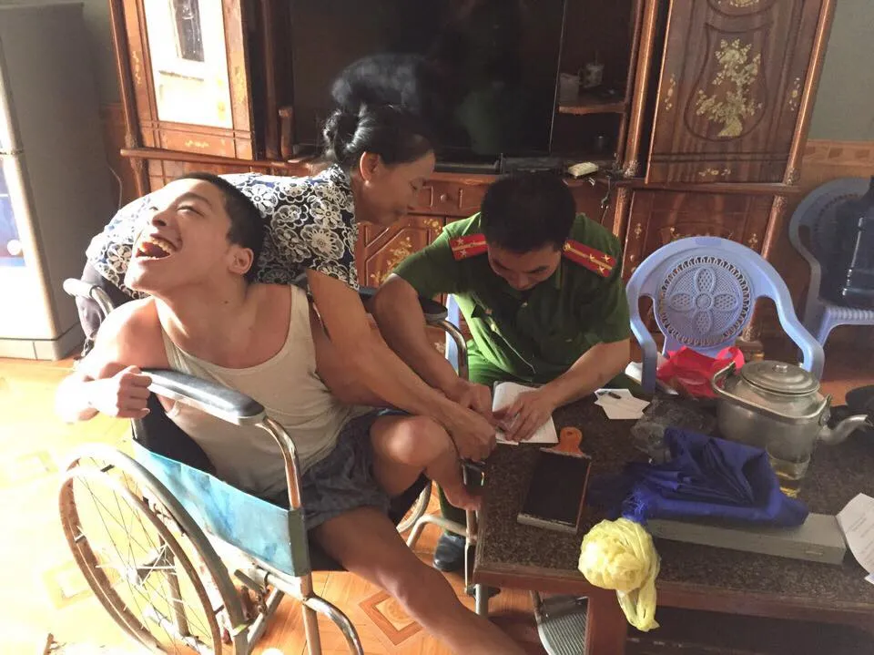 Anh cho biết gần nhà anh cũng có trường hợp bị nhiễm chất độc màu da cam, nhà nghèo, con quanh năm chỉ nằm trên giường nên cha mẹ cũng chẳng thiết tha CMND gì, nhìn thấy rất thương.