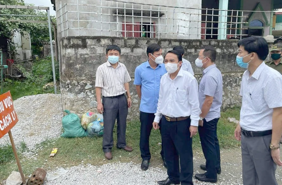 Sáng 25-5, PGS-TS Dương Đình Chỉnh, Giám đốc Sở Y tế tỉnh Nghệ An dẫn đầu đoàn công tác Ban chỉ đạo phòng, chống dịch COVID-19 Nghệ An làm việc với huyện Diễn Châu, xã Diễn Bích để triển khai các biện pháp truy vết, khoanh vùng, dập dịch.