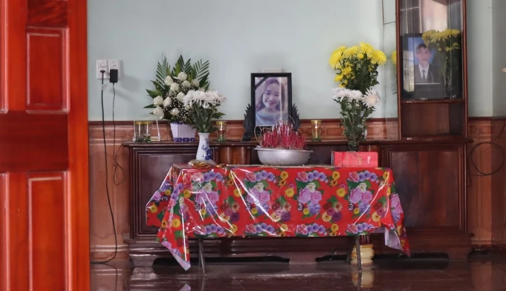Người thân đã lậm bàn thờ, di ảnh chờ đón nhận thi thể chị Bùi Thị Nhung (19 tuổi, quê xã Đô Thành, huyện Yên Thành, Nghệ An).