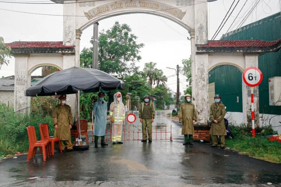 Ngay sau khi ghi nhận hai ca dương tính COVID-19 ở thôn Đoài Thịnh (xã Thạch Trung, TP Hà Tĩnh), Công an TP Hà Tĩnh đã huy động hơn 100 cán bộ, chiến sĩ chốt chặn tại 15 điểm trên 4 trục đường chính.