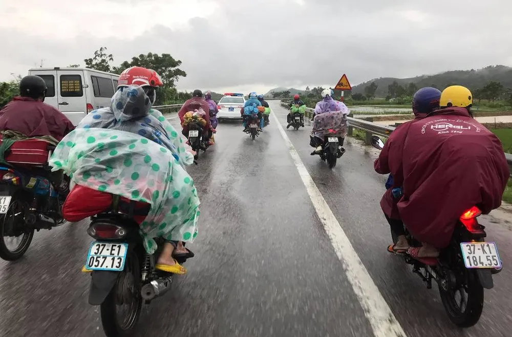 Rất đông người dân chạy xe máy vượt hàng ngàn km về đến đầu địa phận tỉnh Nghệ An.
