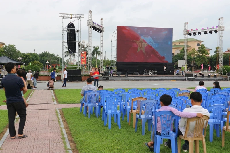 Chiều 27-8, tại quảng trường Hồ Chí Minh (TP Vinh, Nghệ An), Nghệ An đã cho lắp đặt xong màn hình led kích thước lớn để phục vụ người dân hâm mộ bóng đá.