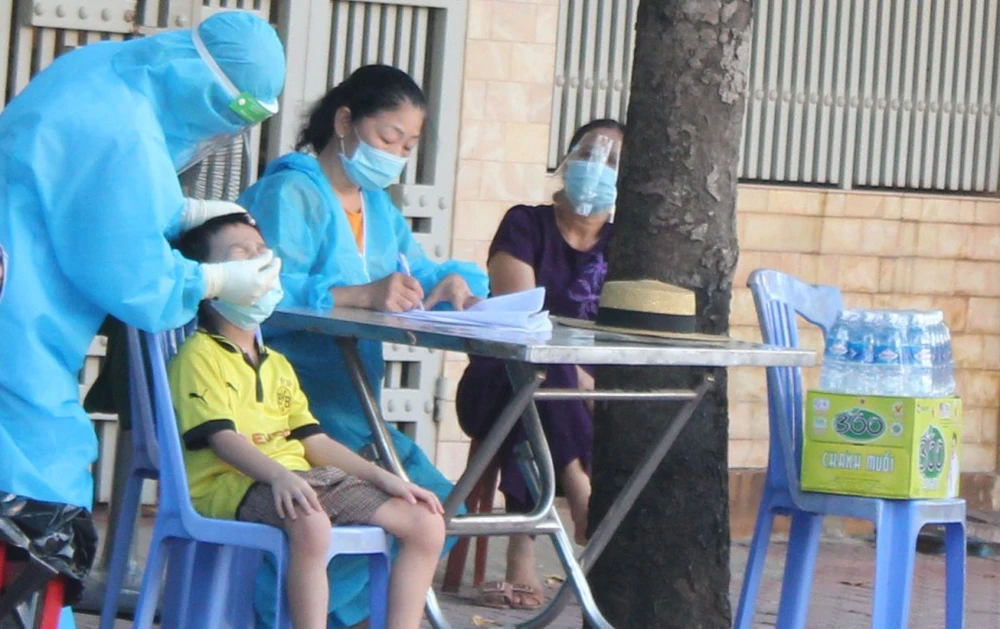 Lấy mẫu test nhanh miễn phí cho trẻ em ở phường Trường Thi (TP Vinh, Nghệ An).