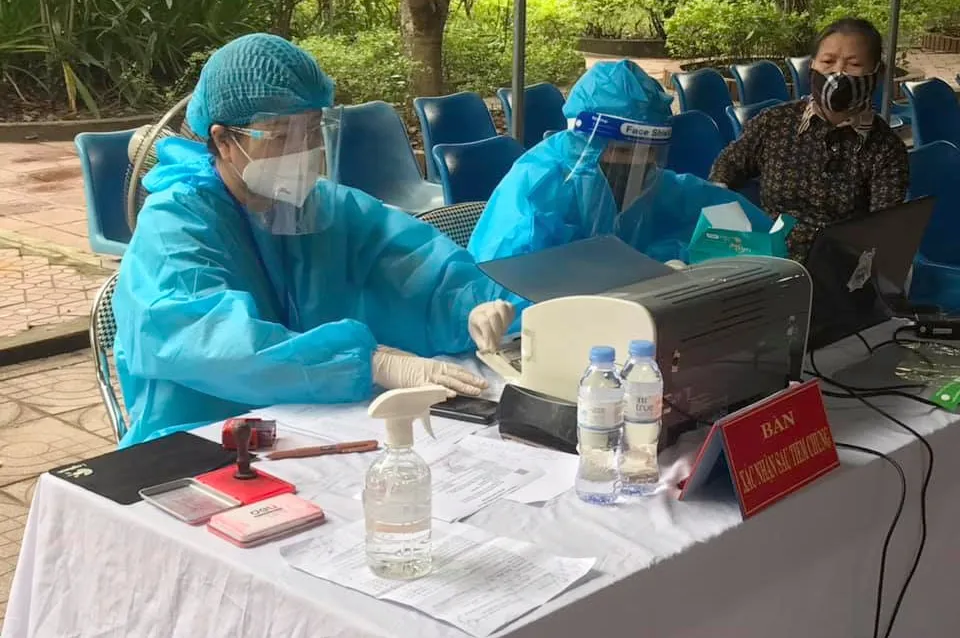Triển khai công tác tiêm vaccine phòng COVID-19 cho người dân ở xã Hưng Lộc (TP Vinh, Nghệ An). Ảnh: ĐẮC LAM