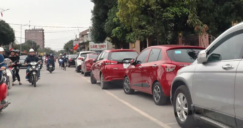 Trưa 5-2, xe ô tô đỗ dãy dài trên đường Nguyễn Duy Trinh (TP Vinh, Nghệ An) để chờ đón học sinh về nhà.