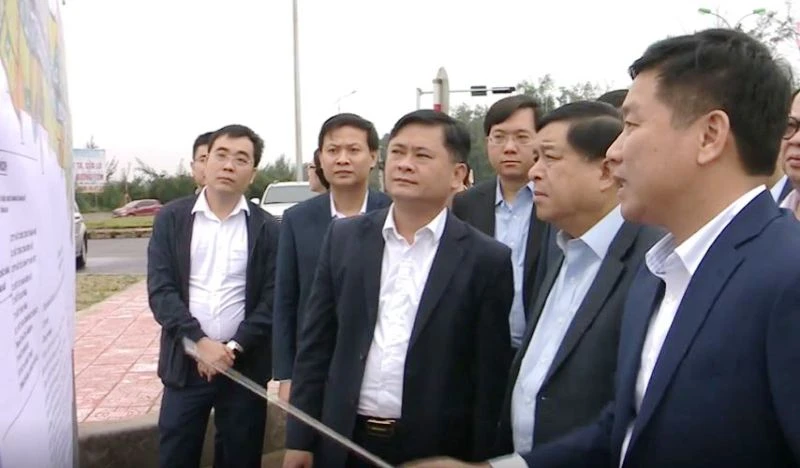 Ông Nguyễn Chí Dũng, Bộ trưởng Bộ KH&ĐT, cùng lãnh đạo tỉnh Nghệ An khảo sát ba dự án giao thông trọng điểm, mang tính động lực tại Nghệ An vào ngày 6-3.
