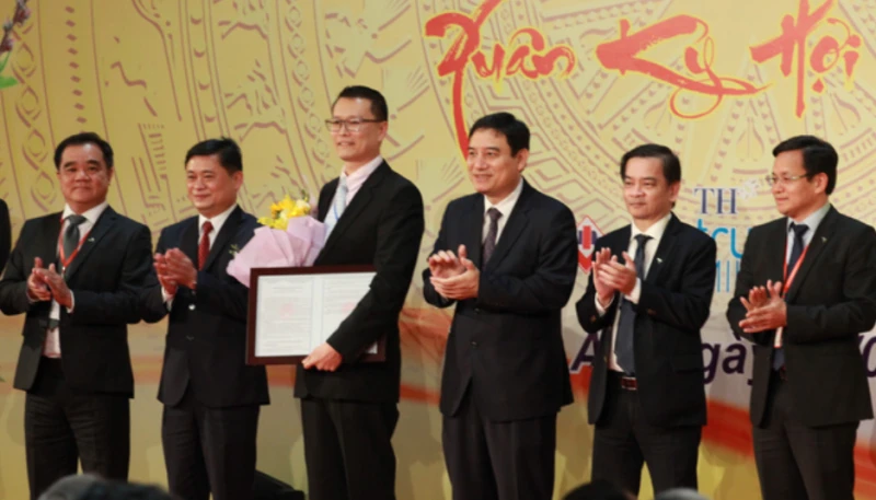 Lãnh đạo tỉnh Nghệ An trao Giấy chứng nhận đăng ký đầu tư cho ông Chris Ma- Phó Tổng giám đốc Công ty Royal Pagoda Private Limited, chủ đầu tư Dự án dệt may Vinhtech tại Khu Công nghiệp VSIP Nghệ An.