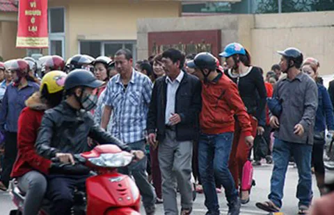 Các tiểu thương kéo đến trước trụ sở UBND tỉnh Nghệ An để tố cáo những việc làm khuất tất của Ban quản lý HTX chợ Bến Thủy. Ảnh: ĐẮC LAM
