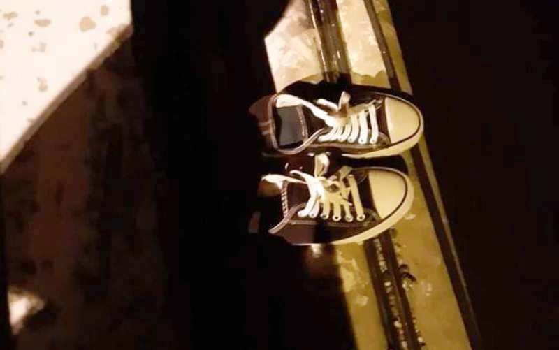 Đôi giày của em M. để lại trên cầu Hiếu. Ảnh: NG.THANH.