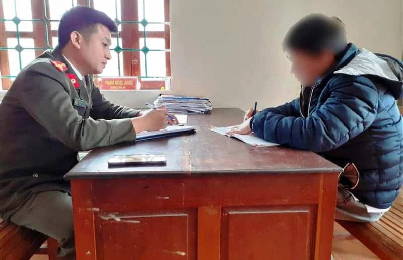 Công an huyện Nam Đàn làm việc với H. Ảnh: Công an huyện Nam Đàn