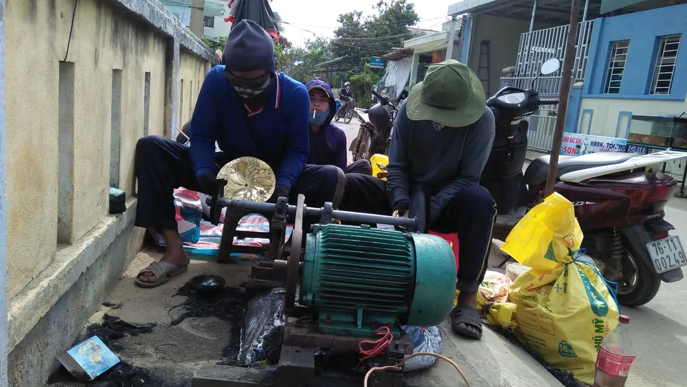 Cũng theo anh, nghề này chỉ kiếm tiền trong vài ngày, do vậy những người làm nghề chủ yếu là nông dân, ngư dân, tranh thủ thời gian rỗi mang máy ra chà kiếm tiền tiêu tết. Hiện toàn huyện Lý Sơn có hàng chục nơi chà đồ đồng được đặt tại các góc chợ, vỉa hè được che chắn tạm bợ.