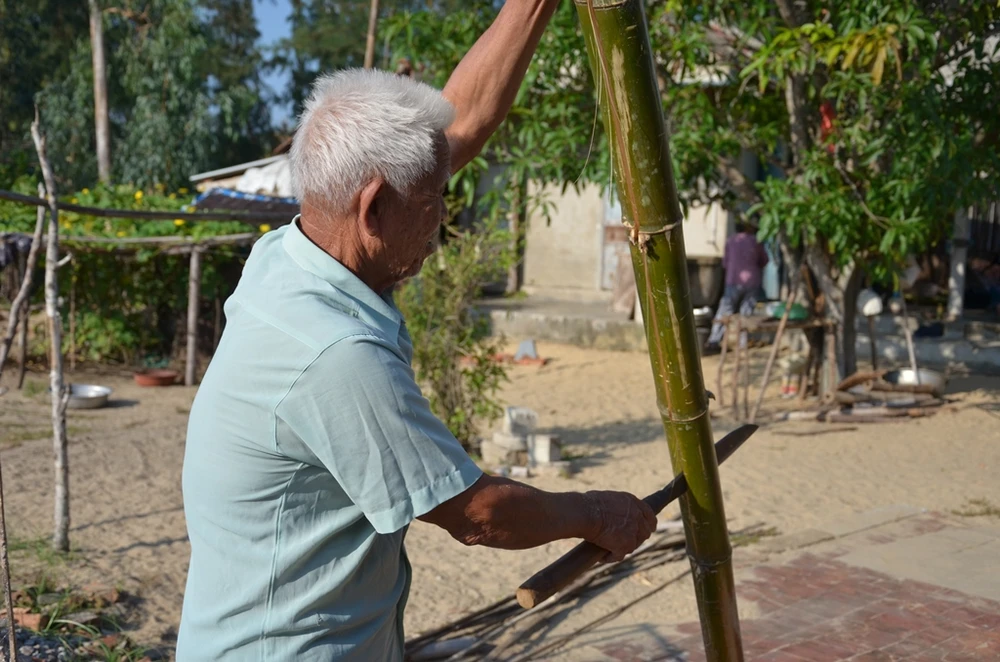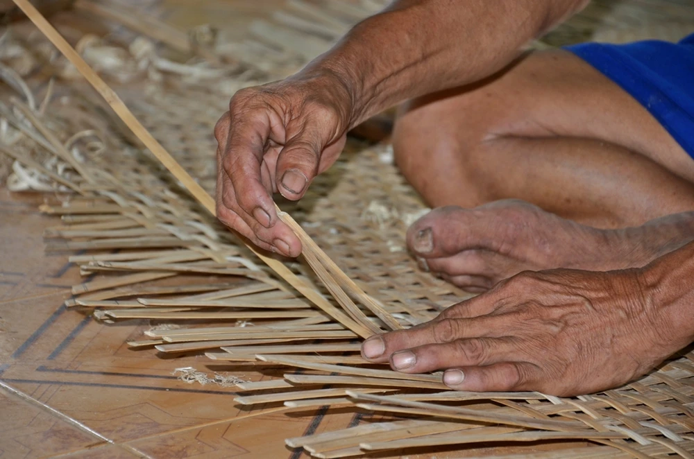 Ông Đông kiểm tra lại các nan tre lần cuối trước khi đan. Ảnh: VÕ THỊNH