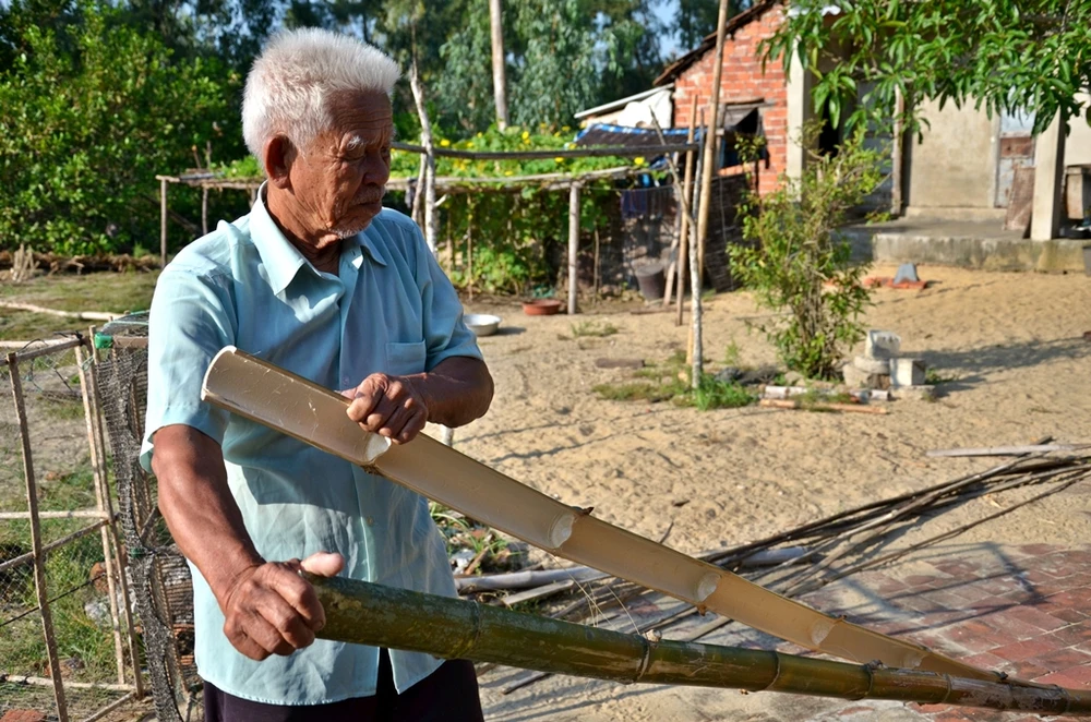 “Ngoài sự khéo tay, người thợ đan thuyền thúng còn phải chọn đúng tre gai, tre đực mới chất lượng và phải có sức khỏe mới làm được những công việc nặng nhọc như chẻ nan, vào khung thuyền…” - ông Đông nói.