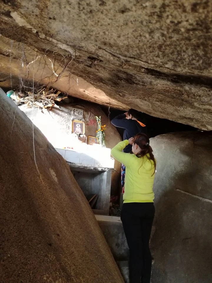 Trong hang được đặt tên là hang Gạo còn có cả một thầy tu xưng là thầy Trí Thuận. Thầy cho hay thầy được đức Quan Âm và ngài Hộ Pháp của đạo Cao Đài gọi về hang này tu. Thầy cũng khẳng định thầy được chùa cho phép lên đây.