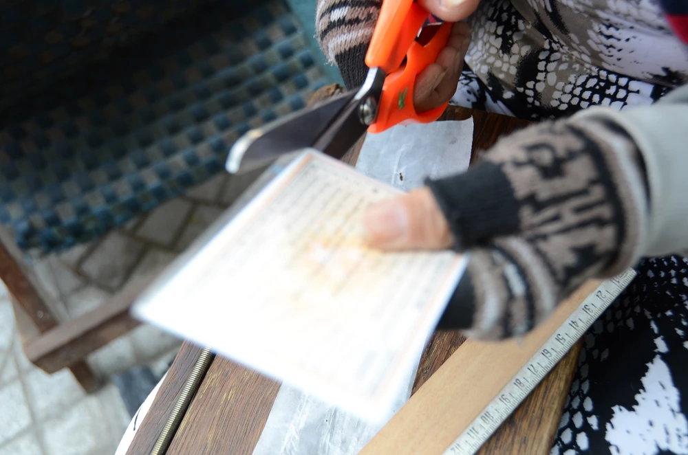 Những lúc rảnh rỗi, bà Nhung sẽ cắt ép bìa nhựa có kích thước tương tự một số loại giấy tờ trước tiết kiệm được thời gian.