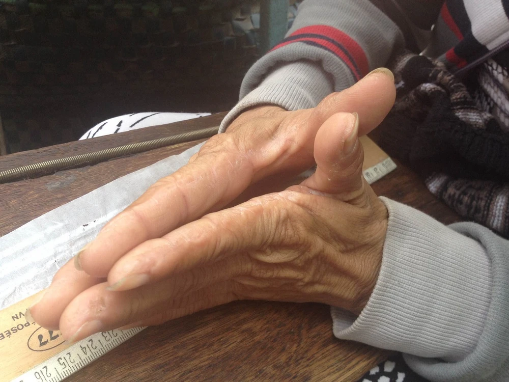 Trên đôi bàn tay bà là vô số vết sẹo trong quá trình làm khi tay đụng phải bàn ủi nóng hổi. Cứ thế, chúng chai sần lên và chồng chất nhau không biết bao nhiêu lớp sẹo.