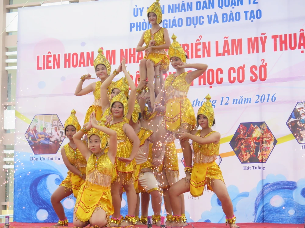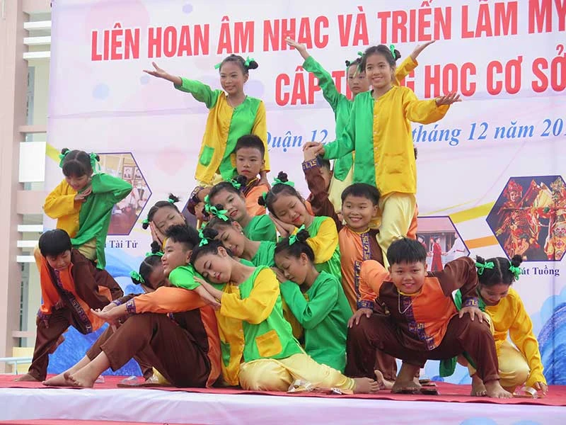 Một tiết mục công phu do các học sinh THCS ở quận 12 dàn dựng và biểu diễn. Ảnh: PA