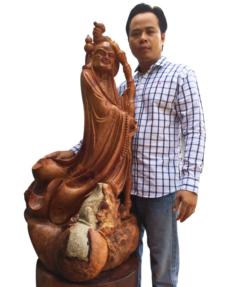 Nghệ nhân Nguyễn Nam bên tác phẩm tượng gỗ La Hán Trường My.