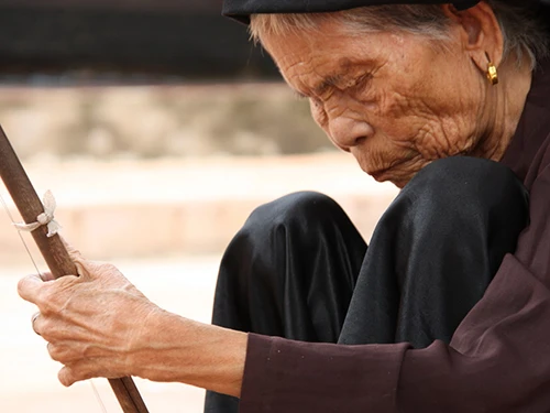 Nghệ nhân Hà Thị Cầu được coi là "báu vật nhân văn sống" nhưng chỉ mới được trao tặng Nghệ nhân nhân gian chứ chưa được trao tặng Nghệ nhân nhân dân. Ảnh: NLĐO