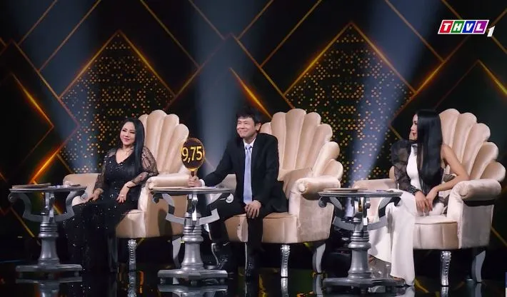 Danh ca Thái Châu, ca sĩ Ngọc Ánh cùng chúc mừng Phúc Lâm. Riêng danh ca Thái Châu cho 9,75 điểm.